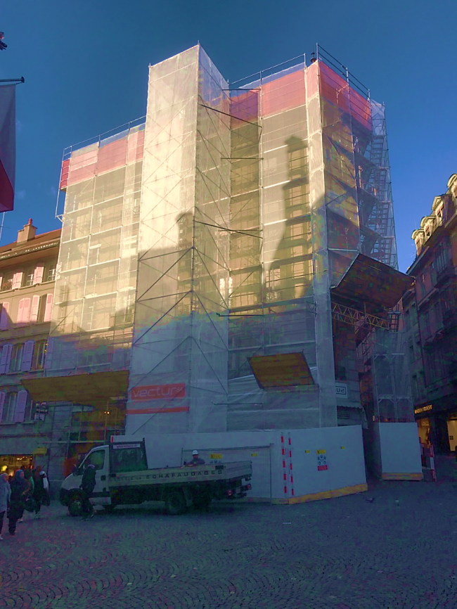 Mise en place d’une structure d’échafaudages à la rue de la madeleine à Lausanne